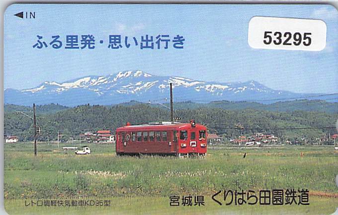- 53295★ふる里発・思い出行き 宮城県 くりはら田園鉄道 レトロ調軽快気動車 KD96型 テレカ★