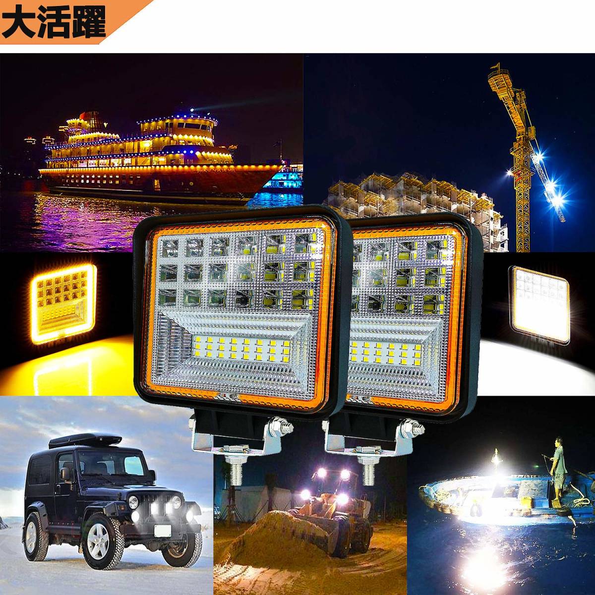 > 《2個セット》LEDワークライト 作業灯 led投光器 高輝度/省エネル/防水 薄型126W12600LM DC12/24V兼用 漁船の作業/建築機械/作業車/集魚灯