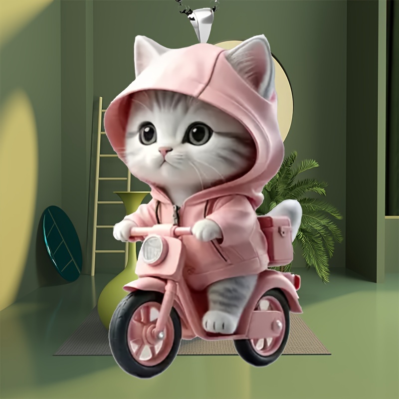 - キーホルダー 猫 オートバイ かわいい 2D アクリル 8cm 原付に乗ったネコ カーアクセサリー バックミラー インテリア かわいい t1550