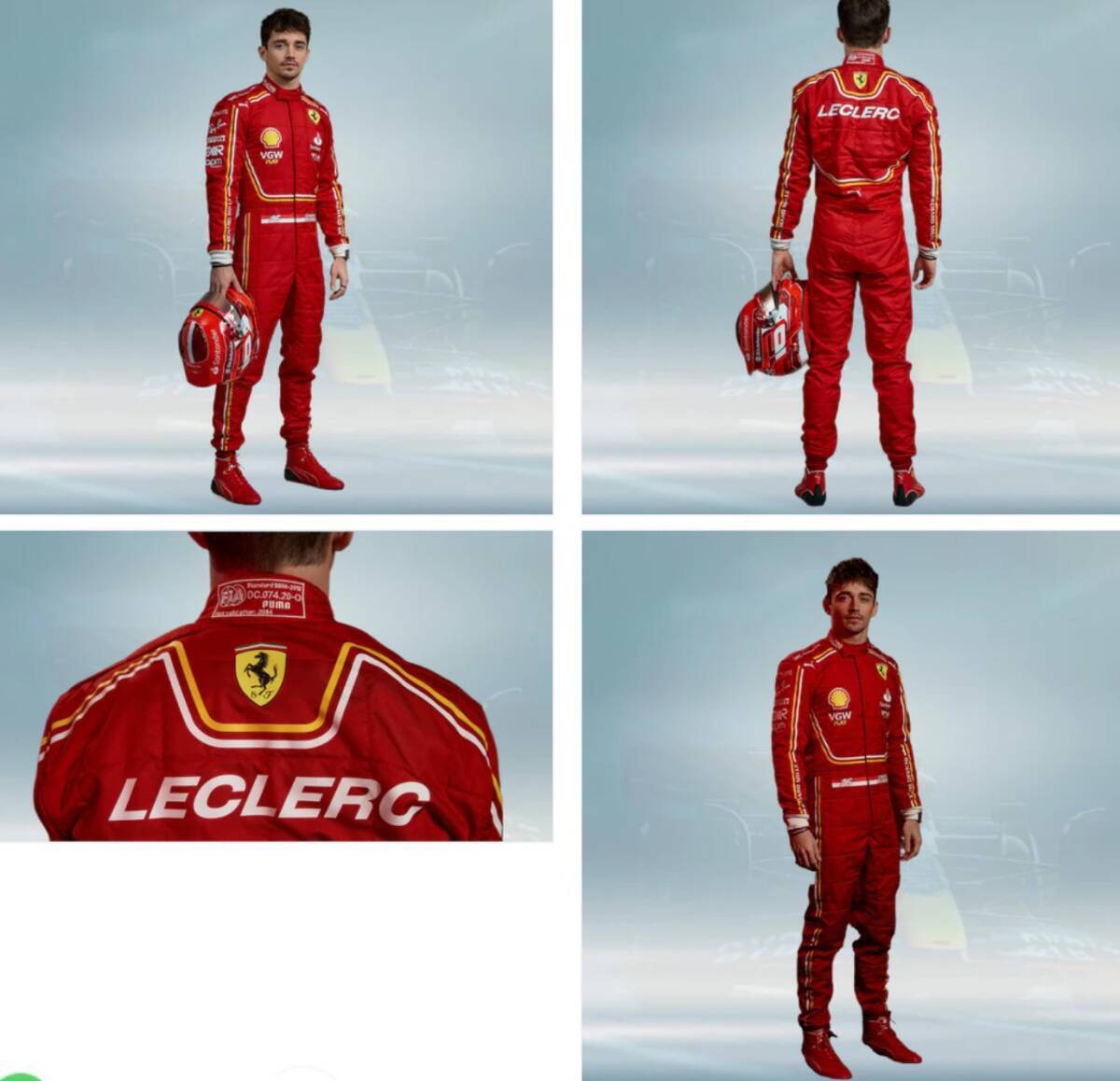 > 海外 高品質 送料込み シャルル・ルクレール 2024 フェラーリ レーシングスーツ サイズ各種 レプリカ カスタム対応