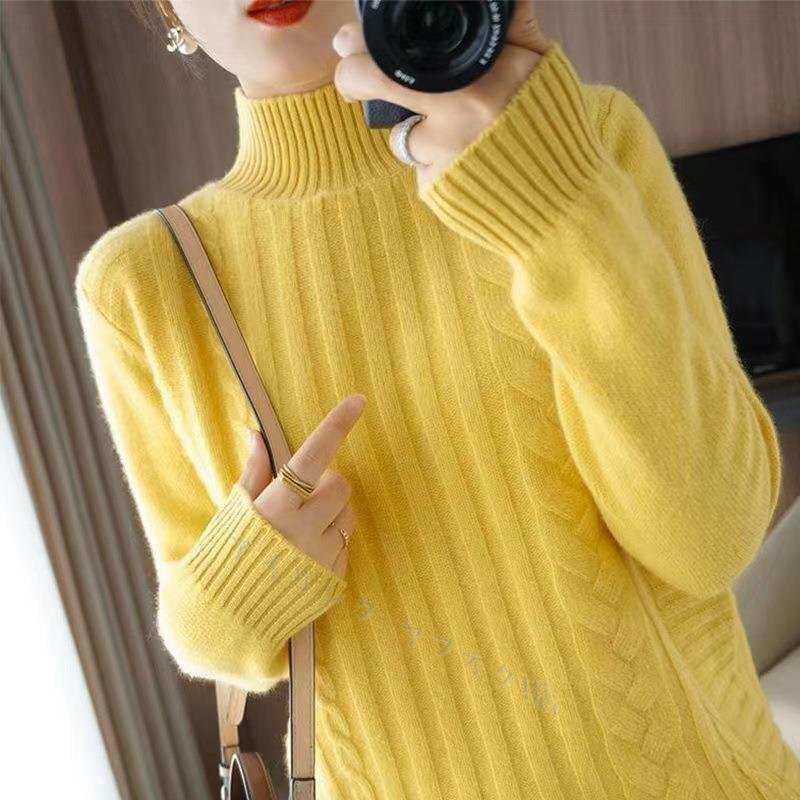 > ☆新品Fサイズ 秋冬 オシャレ 立ち襟 暖かい ニットセーター 純色 ふんわり袖 20304050代 着痩せ ニットトップス