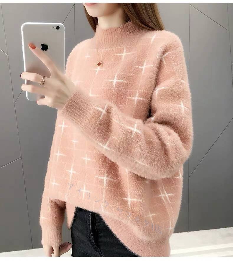> ☆新品Fサイズ 秋冬 オシャレ ラウンドネック 暖かい ニットセーター ふんわり袖 20304050代 着痩せ ニットトップス