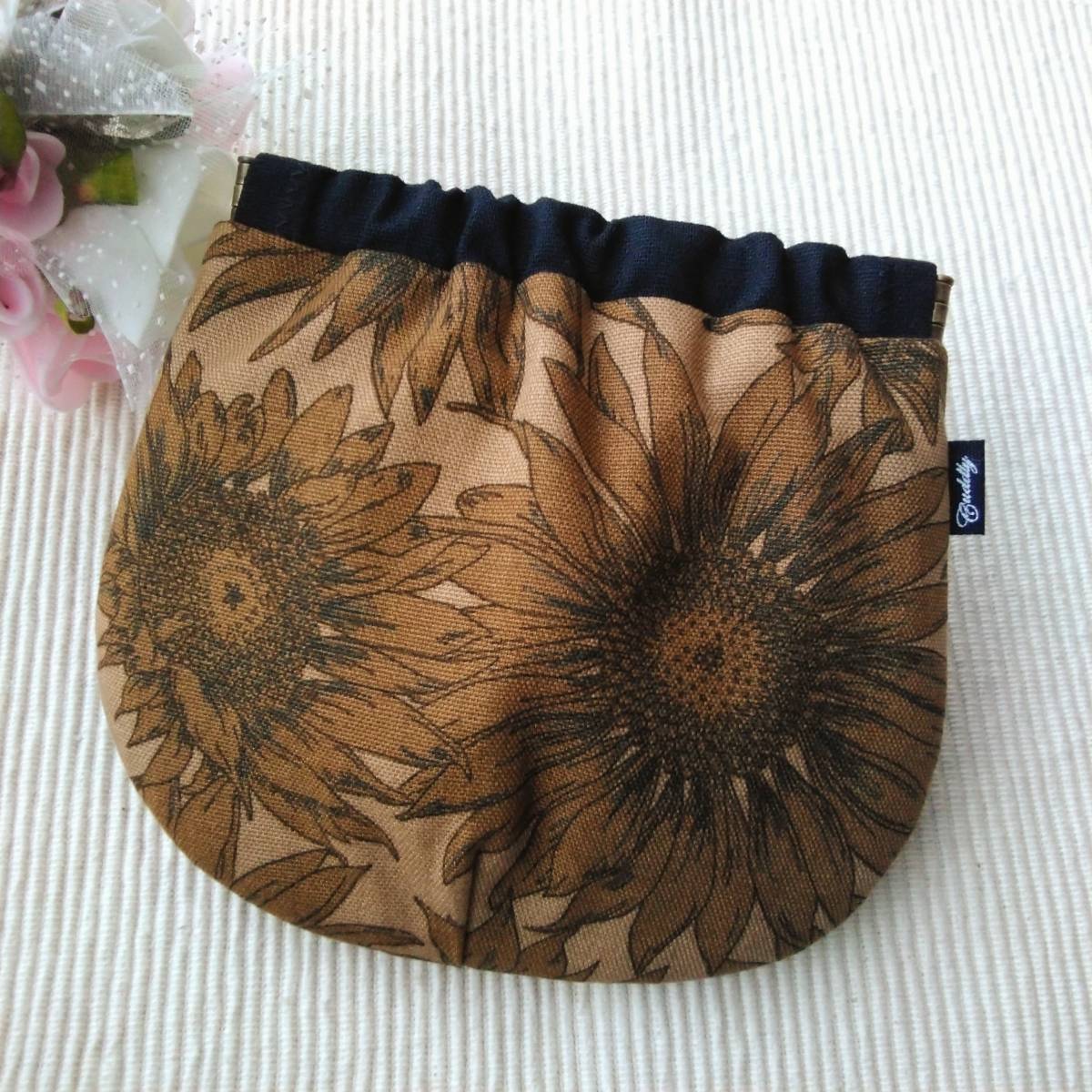 - ハンドメイド バネポーチ ひまわり ブラウン