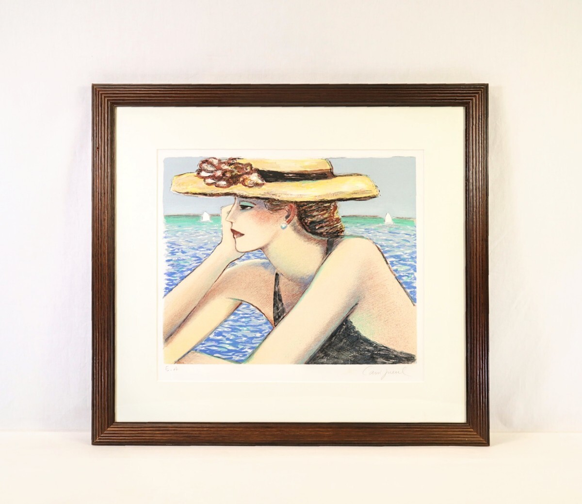 > 真作 ジャン=ピエール・カシニョール 1998年リトグラフ「ヨット」画寸 45cm×37cm 優美な色彩とエレガントな雰囲気を醸し出す女性像 9952
