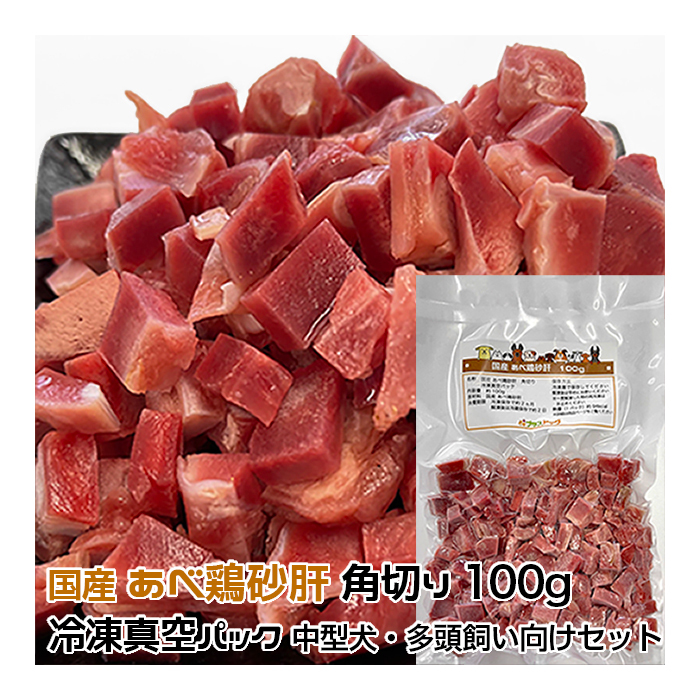 - 犬用・猫用 国産 あべ鶏砂肝 1kg 角切り100g×10パック 冷凍真空パック【クール便発送】犬 猫 手作りごはん