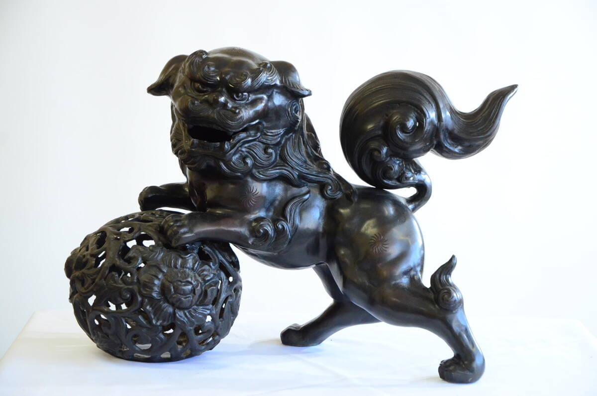 照山造 大型 玉獅子像 15.2kg 41cm×52cm 唐獅子 唐金 銅製 銅器 オブジェ 置物