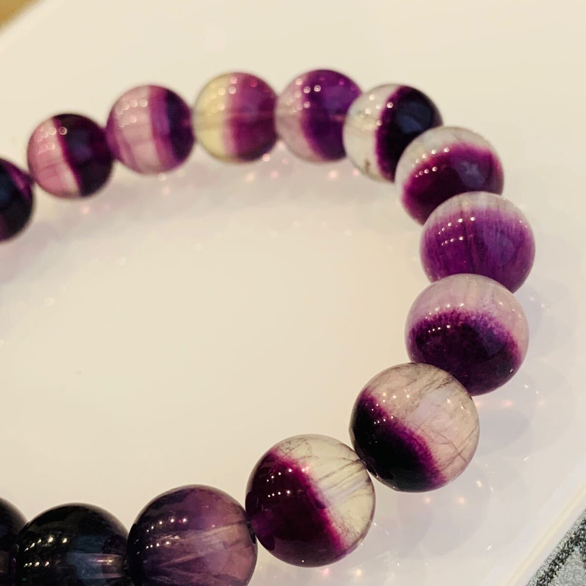 - フローライトブレスレット バイカラー パープル 天然石 天才の石 10.8ミリ 【K225】