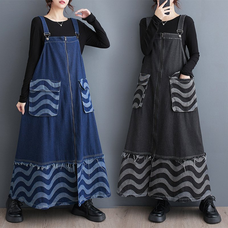- OHJ450★秋冬 2色選択可 復古 カジュアル ゆったり大きいサイズ 体型カバー デニム レディース 袖なし ロングワンピース
