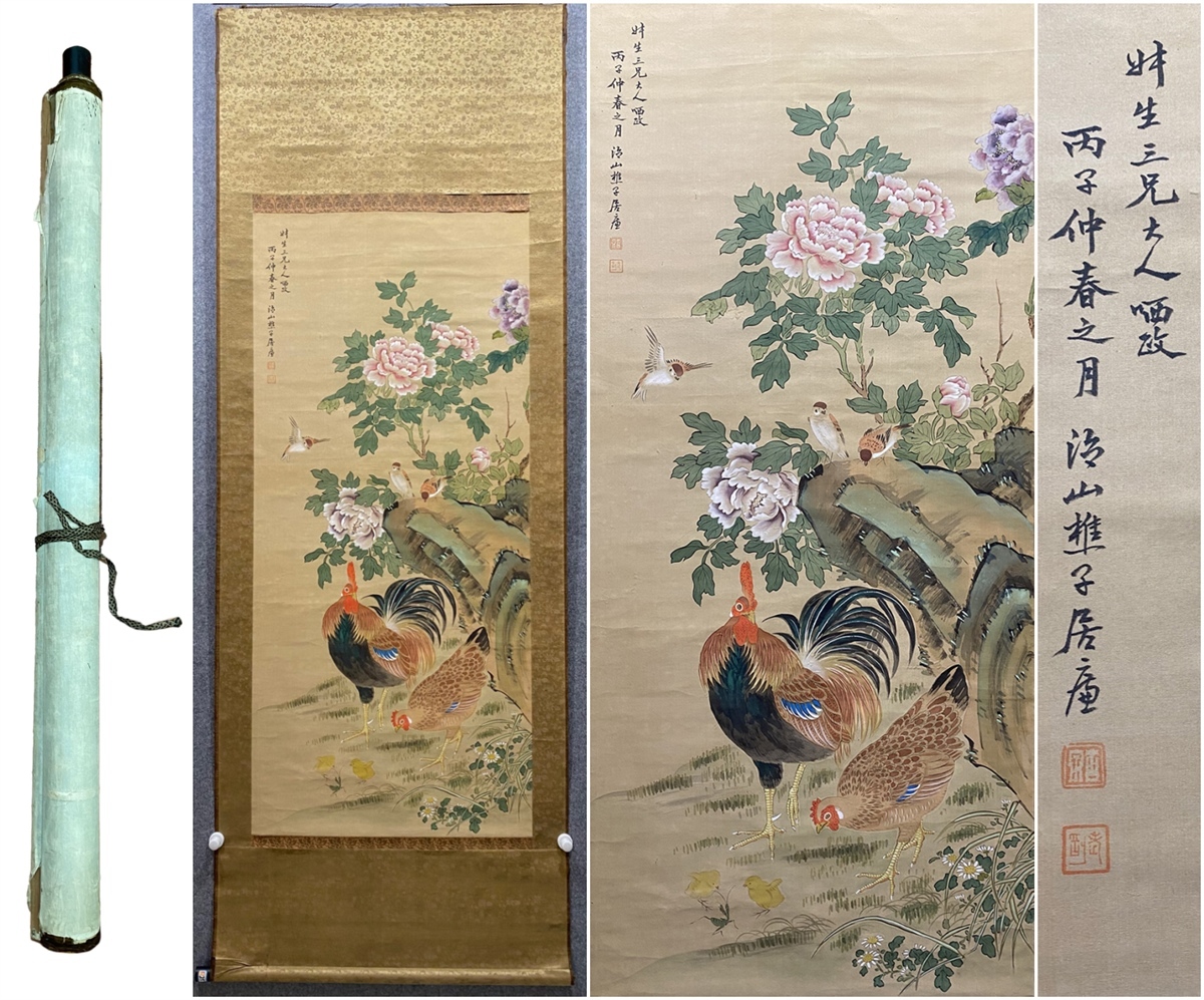 > 古美術 掛け軸 中国・近代 「居廉書」 紙本 【大吉図】 立軸 書道 巻き物 肉筆保証 唐物 古画 画心143x64cm LT-2411125
