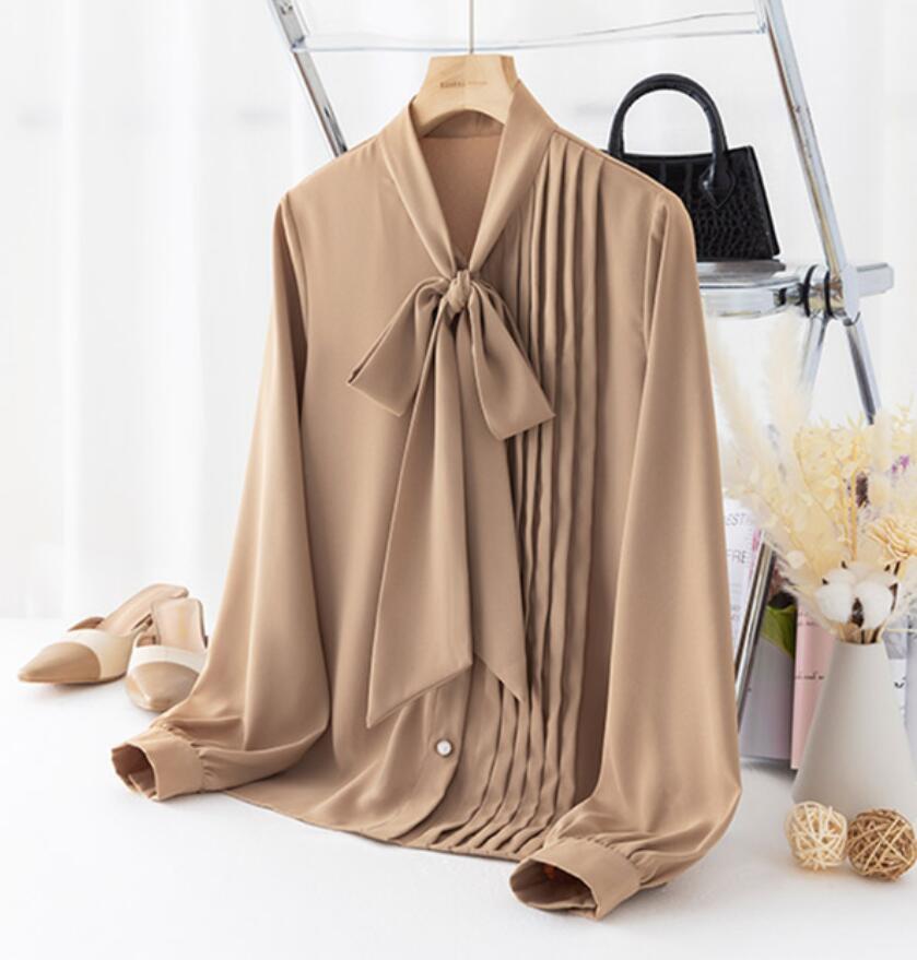 - 秋冬/ボウタイブラウス レディース シャツ トップス リボンタイブラウス 長袖 切替 フロントタック ギャザー シャツ ブラウス