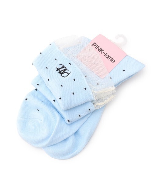- 新品 PINK-latte 折り返しチュール ソックス サックス 定価660円