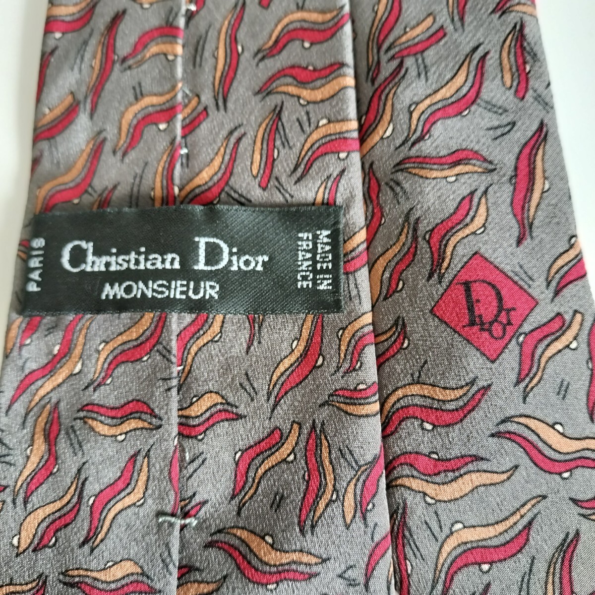 - Christian Dior(クリスチャンディオール)グレー赤オレンジ凪ネクタイ