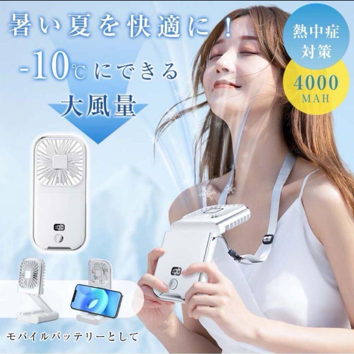 - 手持ち扇風機 ハンディファン 4段階調節 スタンド機能 卓上 首掛け扇風機