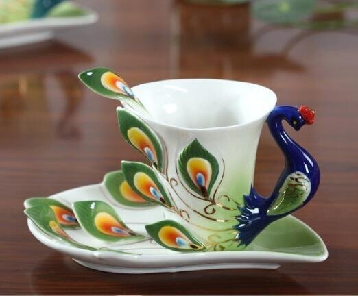 - OHJ530★新作茶器 オシャレな孔雀のコーヒーカップ【230ml】キッチン 食器 洋食器 茶器 コップ マグ ティーカップ ソーサー 鳥 洋食器