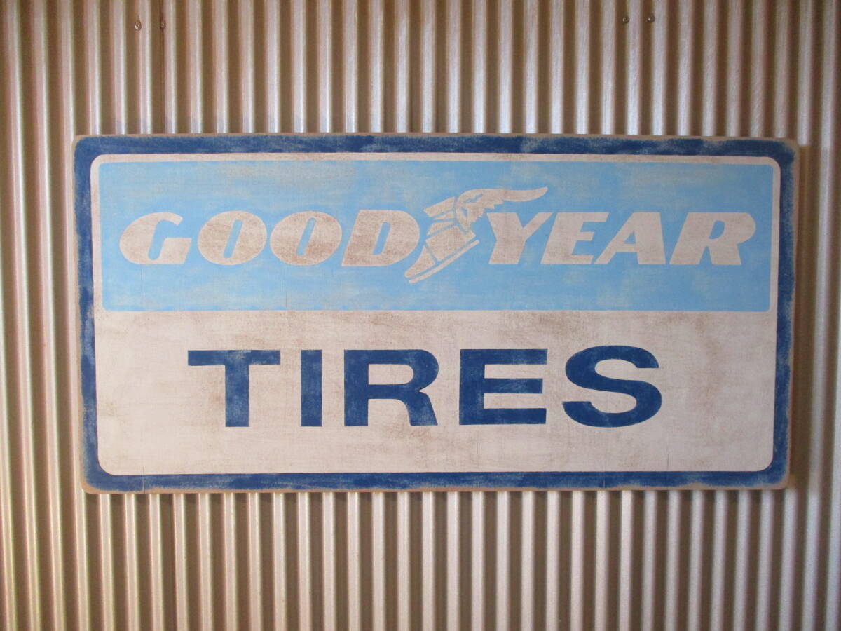 > インテリア木製看板 GOODYEAR TIRE検)アドバタイジング企業販促ガレージカスタムアメ車FIRESTONEPIRELLISTPSHELLMICHELINUSA50s60s