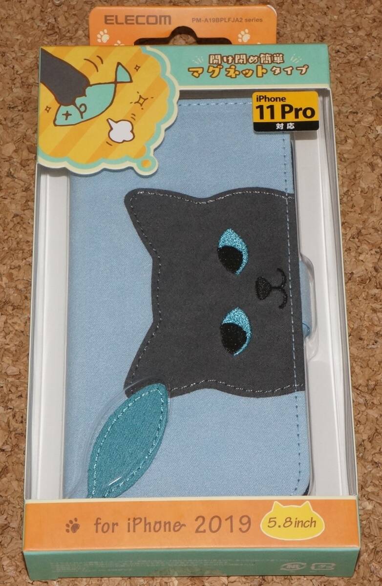 - ★新品★ELECOM iPhone11 Pro ファブリックケース ネコ ブルー