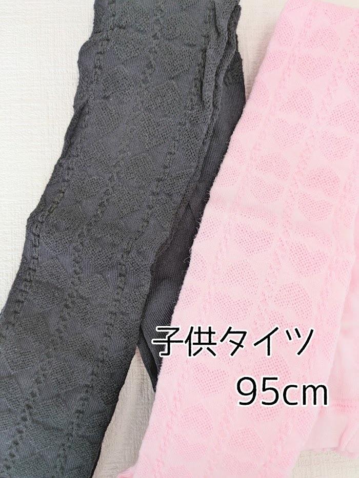 - 子供 タイツ 2セット ハート柄 訳あり アウトレット 大特価 ブラック ピンク I