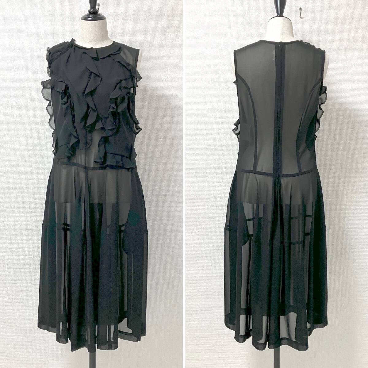 - AD2010 COMME des GARCONS フリル 装飾 シースルー ノースリーブ ロング ワンピース ブラック Sサイズ コムデギャルソン archive 4100113