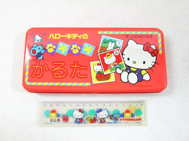 - 【サンリオ 1989年 ハローキティのなぞなぞかるた 缶ケース 定規セット】ハローキティ/キティちゃん/ペンケース