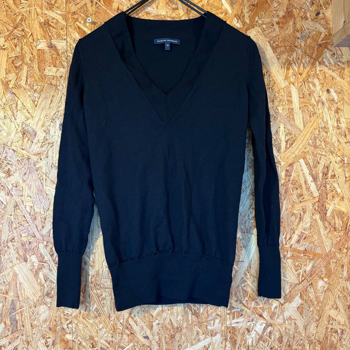 > 美品 BANANA REPUBLIC Vネック 長袖セーター ウール トップス ブラック レディース 3729