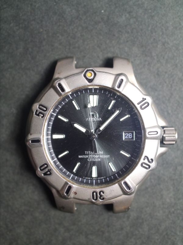 > シチズン CITIZEN アテッサ ATTESA 20BAR クォーツ 3針 デイト ダイバーズウオッチ 5512-F51294 男性用 メンズ 腕時計 z380 稼働品