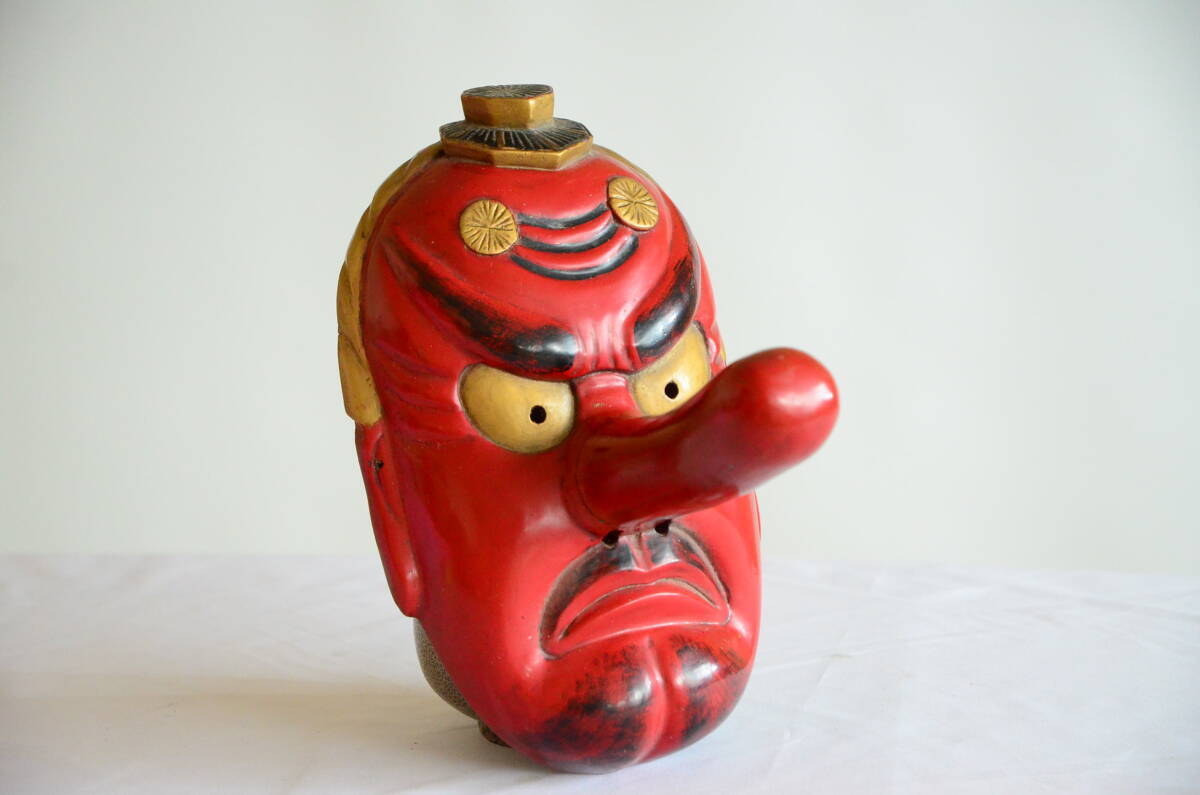 天狗面 木彫り 時代物 骨董 アンティーク 縦31.5cm 横18cm 奥行21.5cm