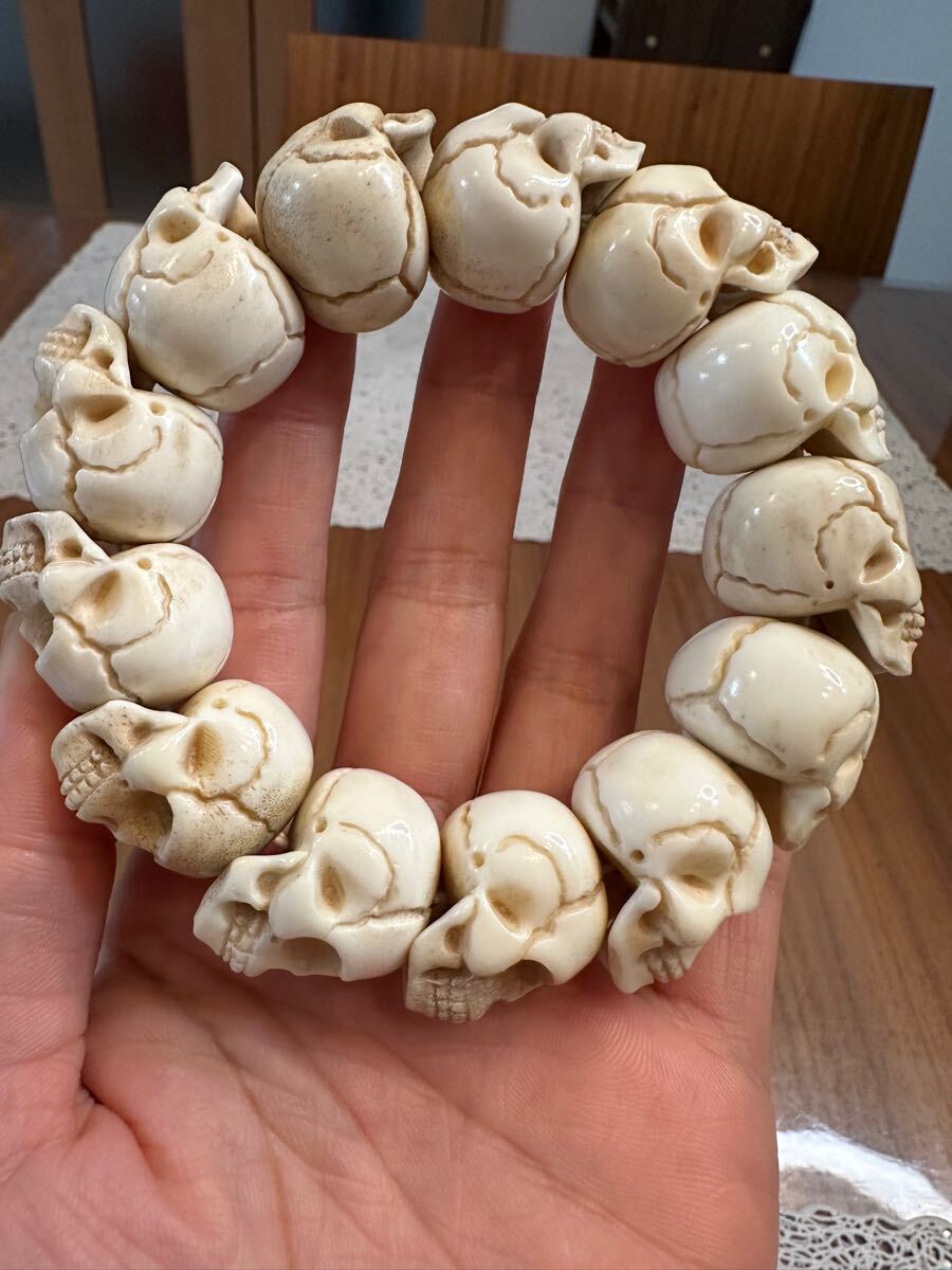 - V-933 高品質 天然鹿の角 根付 手彫り 髑髏 ドクロ ブレスレット 魔除け