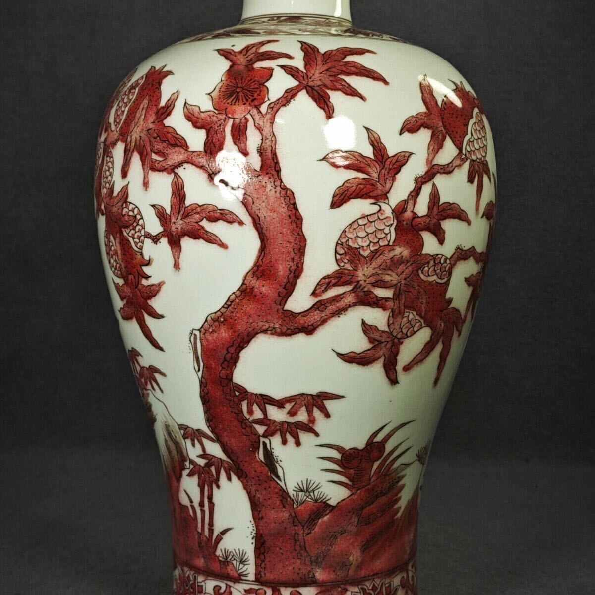 - 旧蔵 時代物 清国 大清康熙年製 釉裏赤梅瓶 古美術 アンティーク 収蔵品