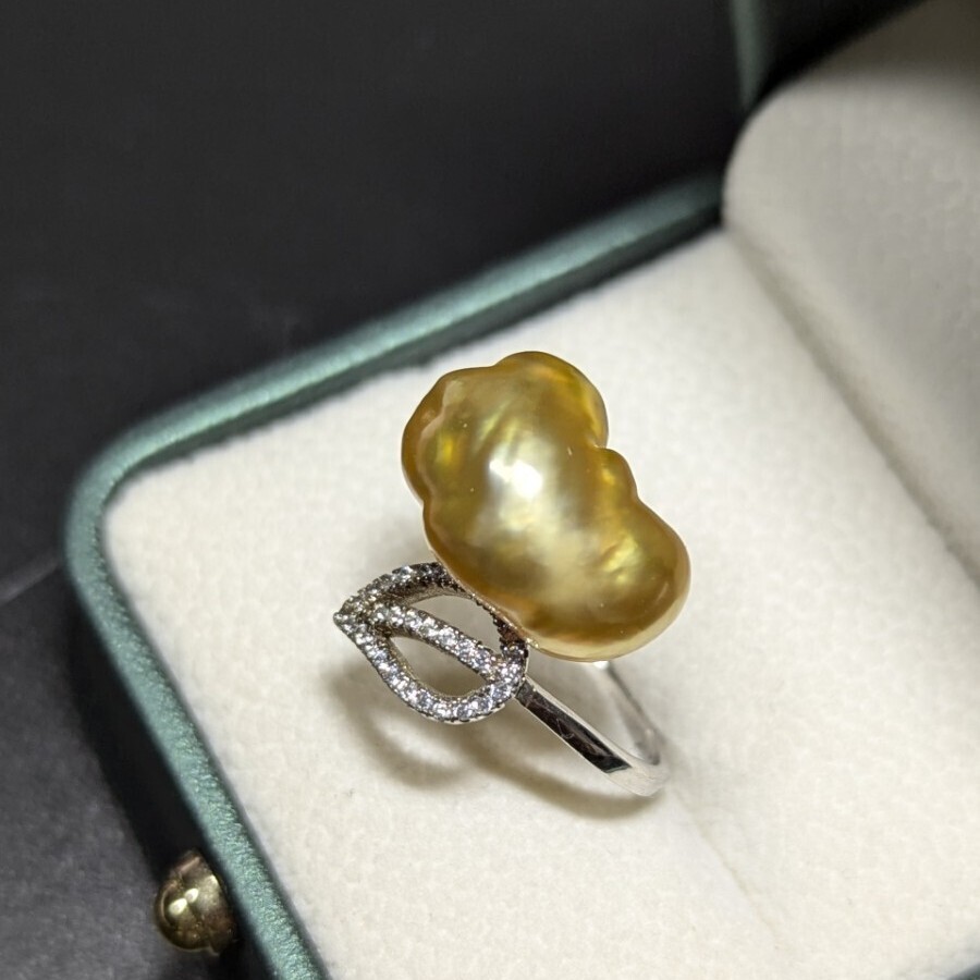 - R102 超希少 芥子 茶金 南洋白蝶真珠 ケシ SV リング 無調色