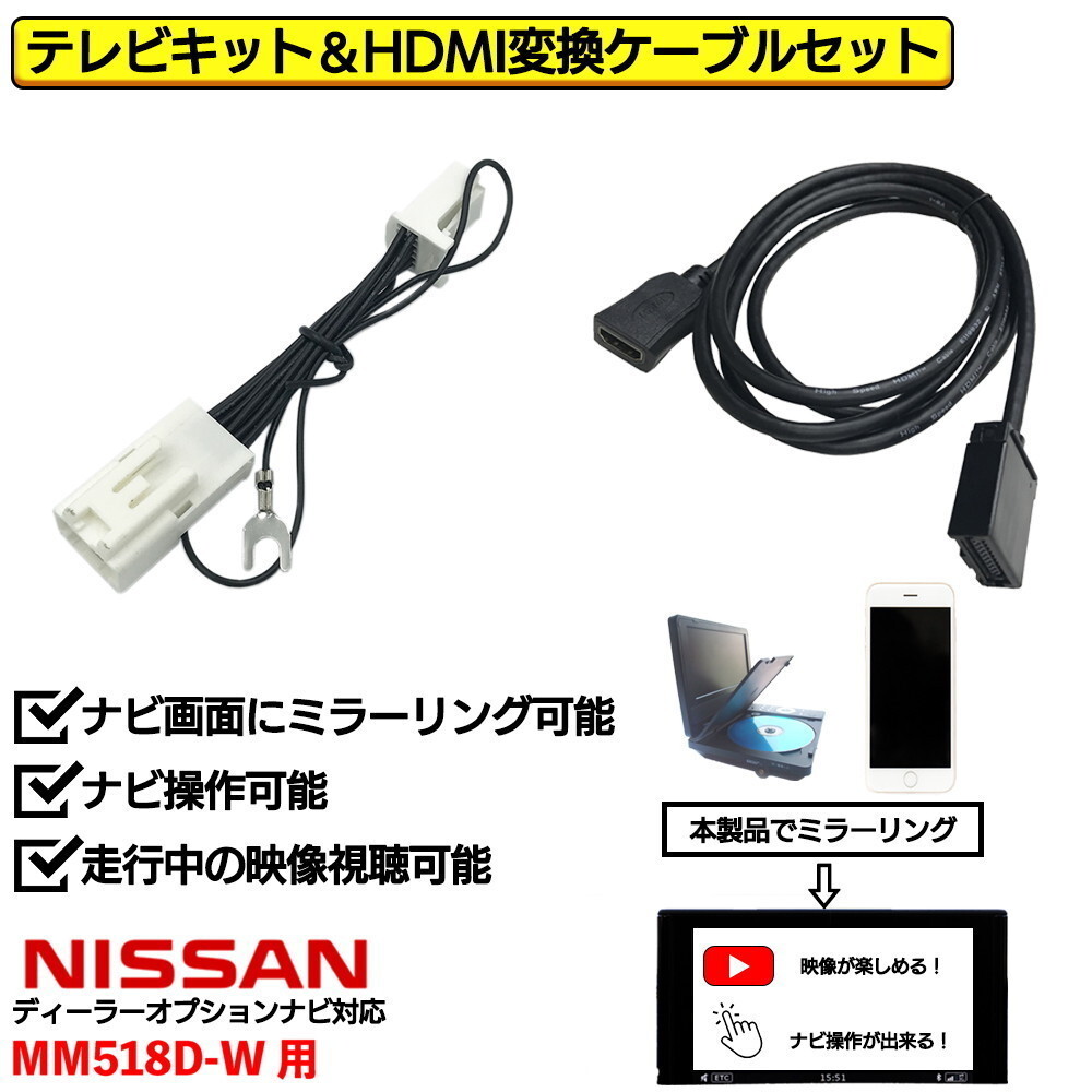 - MM518D-W 用 日産 走行中 TV 見れる ナビ操作 HDMI 変換 ケーブル セット スマホ ミラーリング テレビ YouTube ユーチューブ