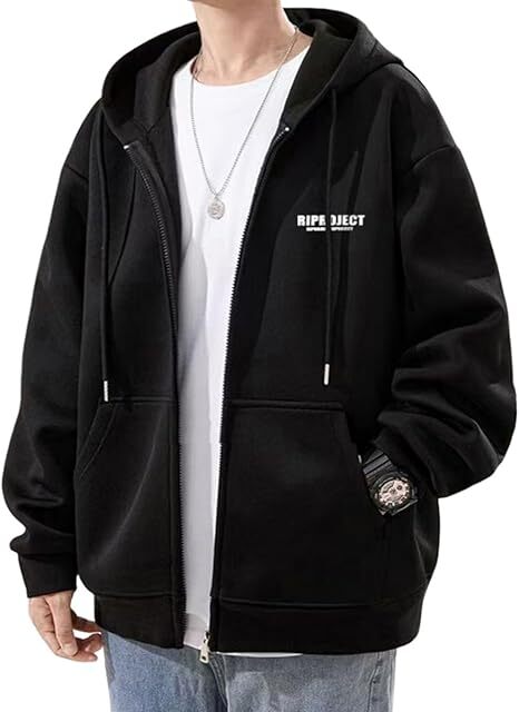 - メンズ パーカー 秋冬 長袖 裏起毛 ジップアップ 無地 XL