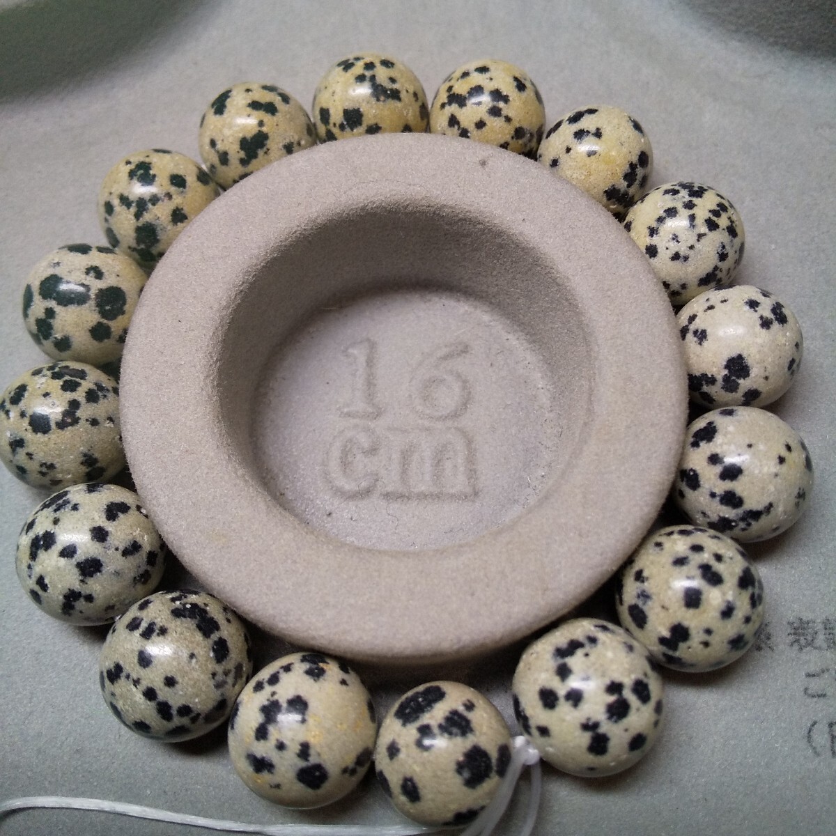 - 天然石 ダルメシアンジャスパー12㎜玉 総ブレスレット 内径16cm位 女性L 男性Mサイズ 【自己防御 勇気 情熱 永遠の夢】ブリコラ屋