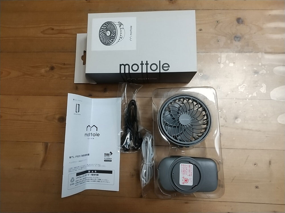 > ☆未使用☆ライフオンプロダクツ mottole ハンズフリー 4way ミニファン MTL-F025-GY グレー ~送料改定~