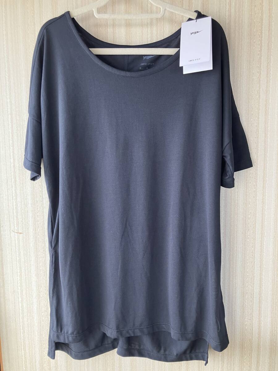 > ♪新品タグ付 NIKEナイキ レーヨンミックスロング丈半袖Tトップ 定価3,850円 黒 XL ヨガ ピラティス ダンス Tシャツ