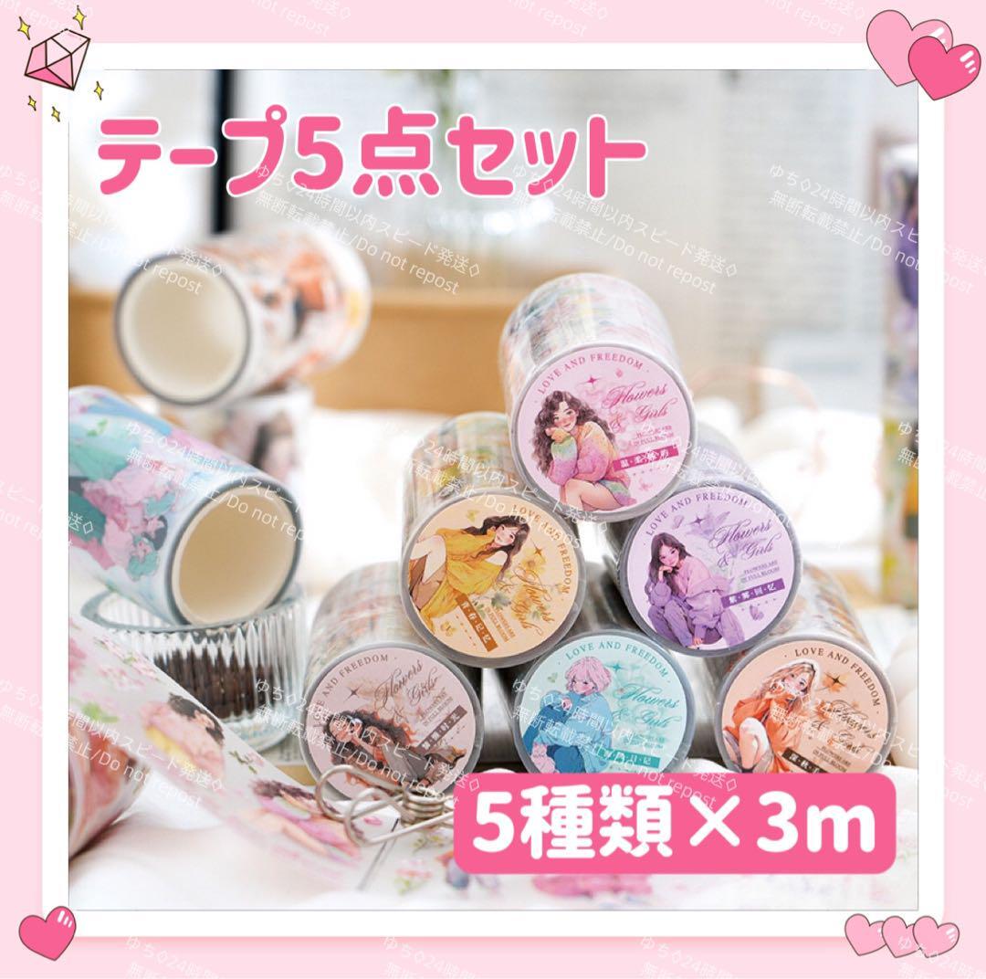 > シール ロールテープ マスキングテープ 3m 5種 マット PET 防水 デコ コラージュ アレンジ 素材 コレクション 可愛い ⑥