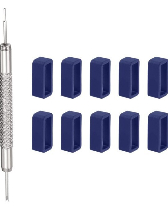 > ★最終価格★ファスナーリング 時計ベルトループ ウォッチバンドホルダー 時計バンド修理用ばね棒付き ラバー 16mm ネイビーブルー 10個