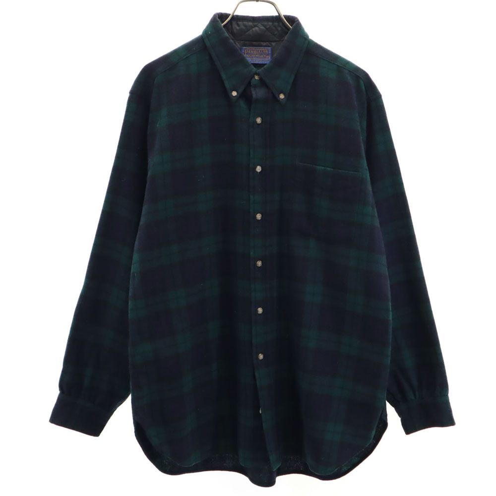 - ペンドルトン 70s ヴィンテージ USA製 ウールブレンド チェック柄 長袖 ウールシャツ L グリーン×ネイビー PENDLETON メンズ