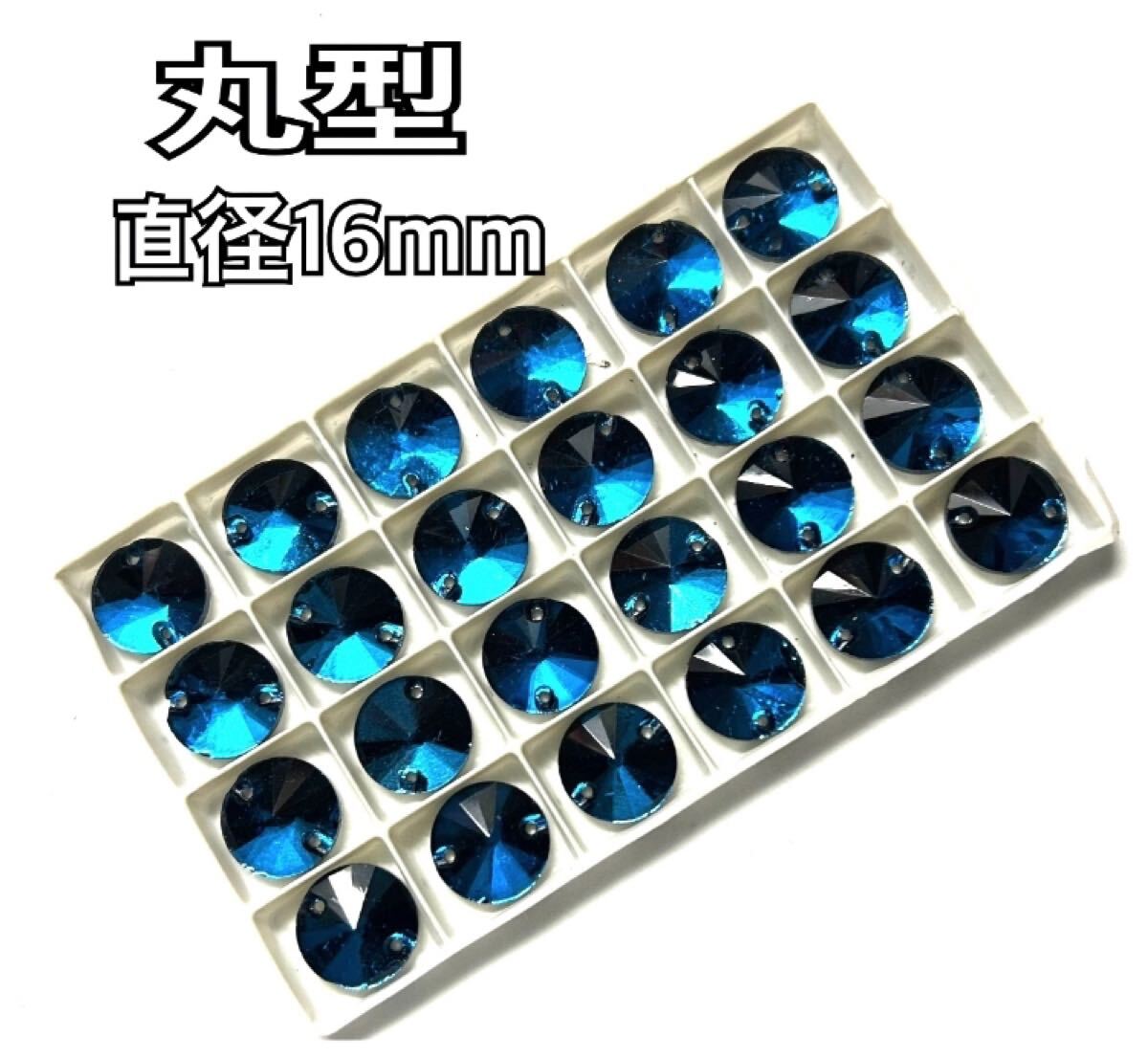 - 直径16mm 丸型 ガラスビジュー 衣装装飾用 高輝度 ソーオン レオタード 新体操 ピーコックブルー