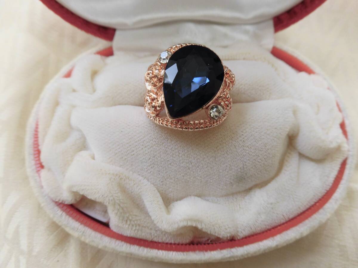- ●存在感大*青ブルーサファイア*15mm20mmドロップストーン/ピンクゴールドの指輪/サイズ18号/ユニセックス