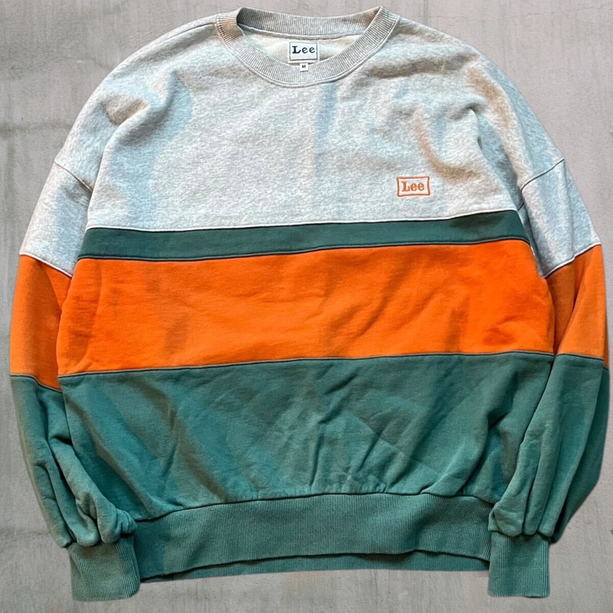 > Lee ライン切替スウェット トレーナー レディースM●洗濯プレス済●リー トップス ビタミンカラー スポーティー ワンポイント 古着/89