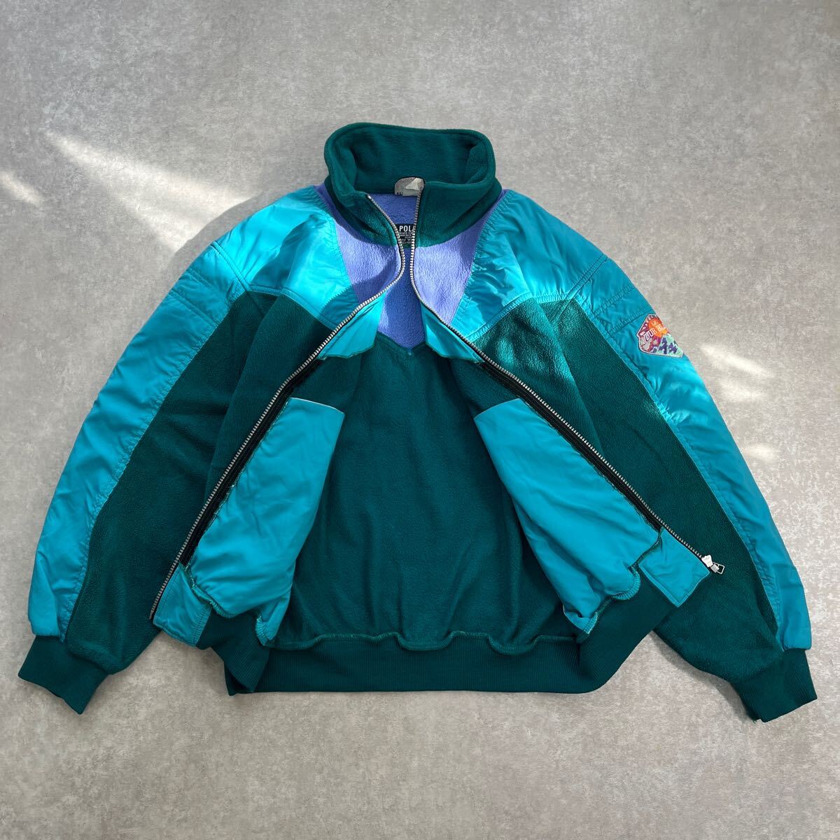 > レトロ POLARTEC フルジップ フリースジャケット 切り替え vintage グリーン ヴィンテージ ワッペン