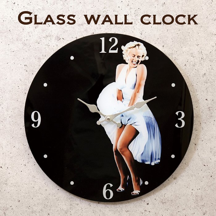 - 【マリリン・モンロー】※《ガラスウォールクロック・モンロー in ムービー》 アメリカン雑貨 時計