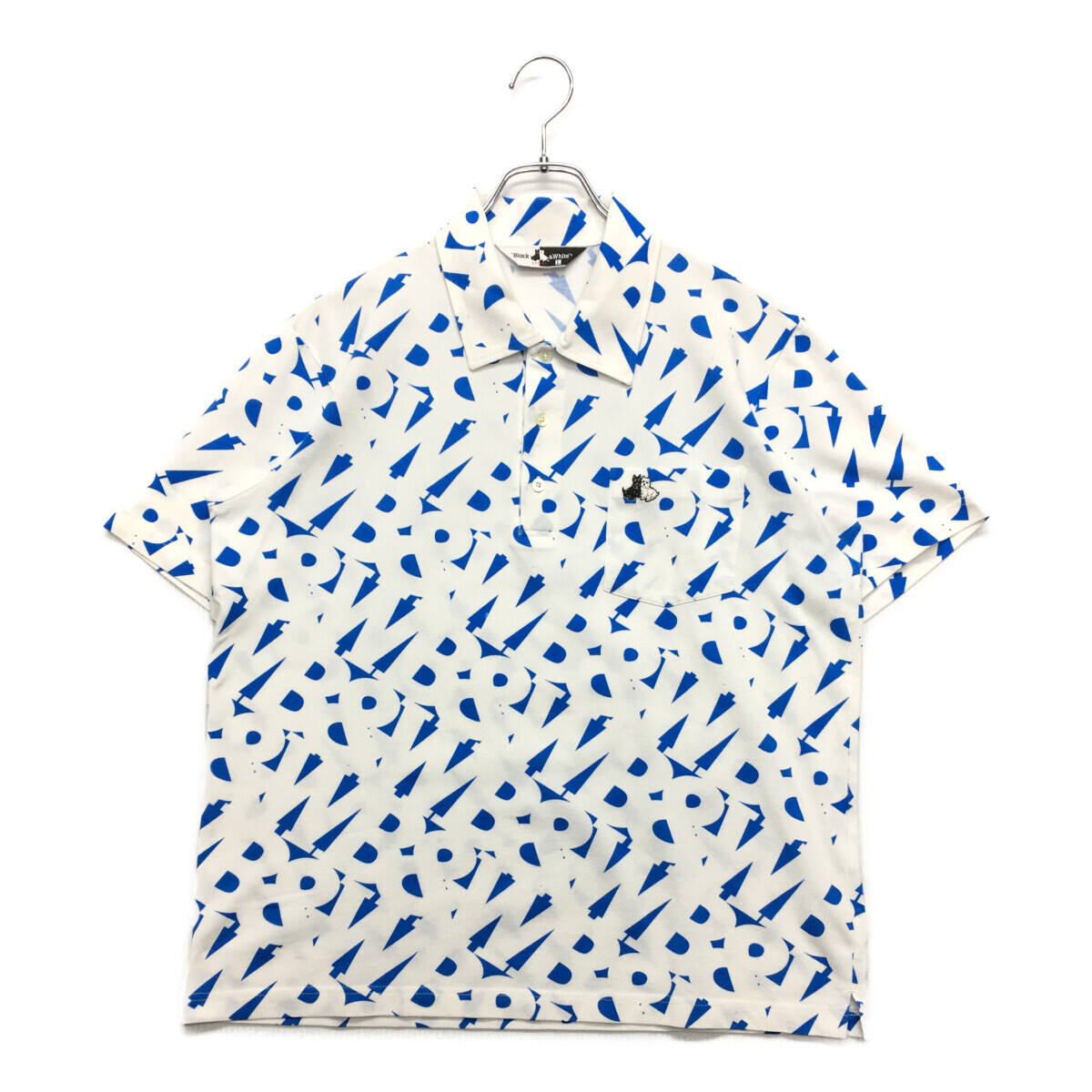 - coco 中古【SALE】 ブラック&ホワイト メンズ 半袖ポロシャツ L 白×青 ホワイト×ブルー ロゴ総柄 レターパックプラス発送可 89250