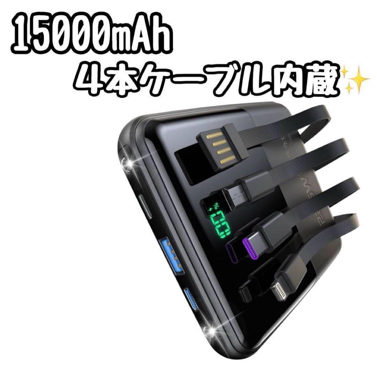 - モバイルバッテリー 15000mAh ケーブル内蔵 22.5w 急速充電 ライト