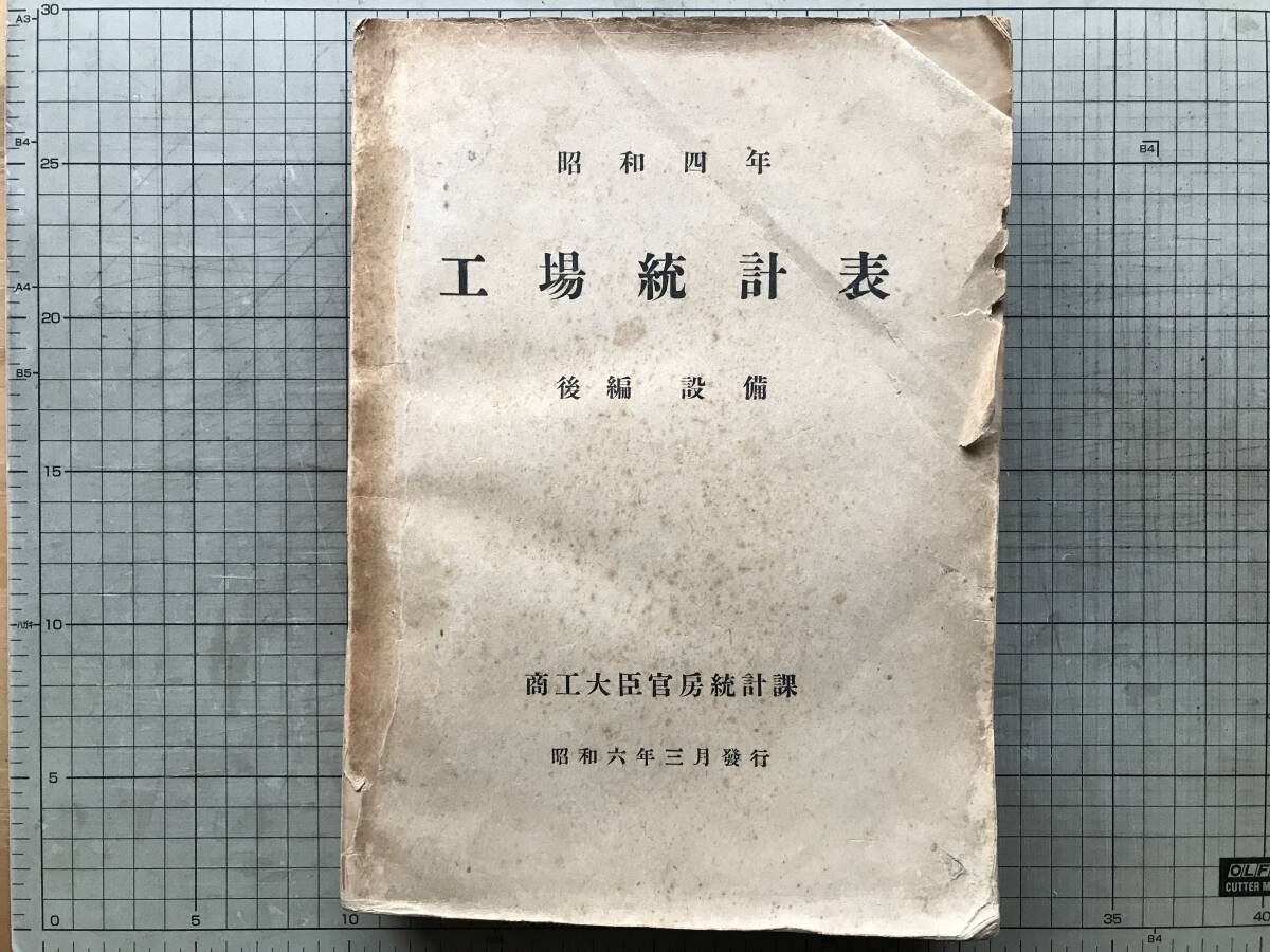 - 『昭和四年 工場統計表 後編 設備』商工大臣官房統計課編纂 1931年刊 ※工場数・職工数・原動機・主要作業機械及設備数・官営工場 他 00048