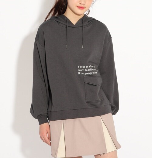 > 新品 PINK-latte 裏毛ポケット付パーカー チャコールグレー(014) 15(150cm) 定価2530円