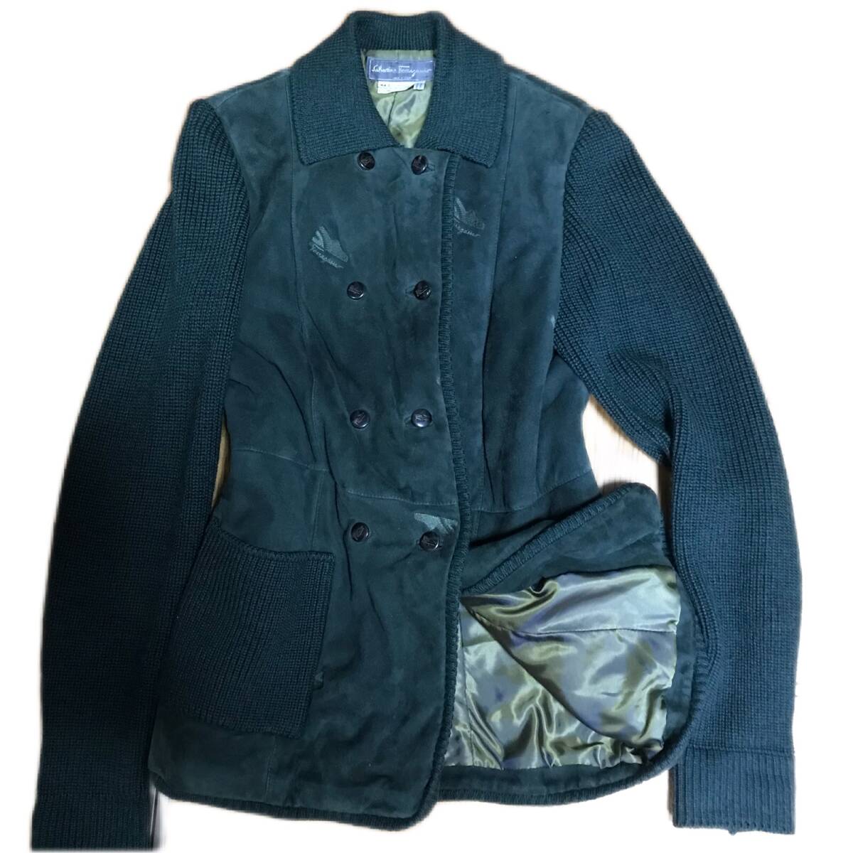 > 【良品】Ferragamo サルヴァトーレフェラガモ ウールジャケット 綿 アウター レディース 44 男女兼用 XXL グリーン系 紺碧 緑