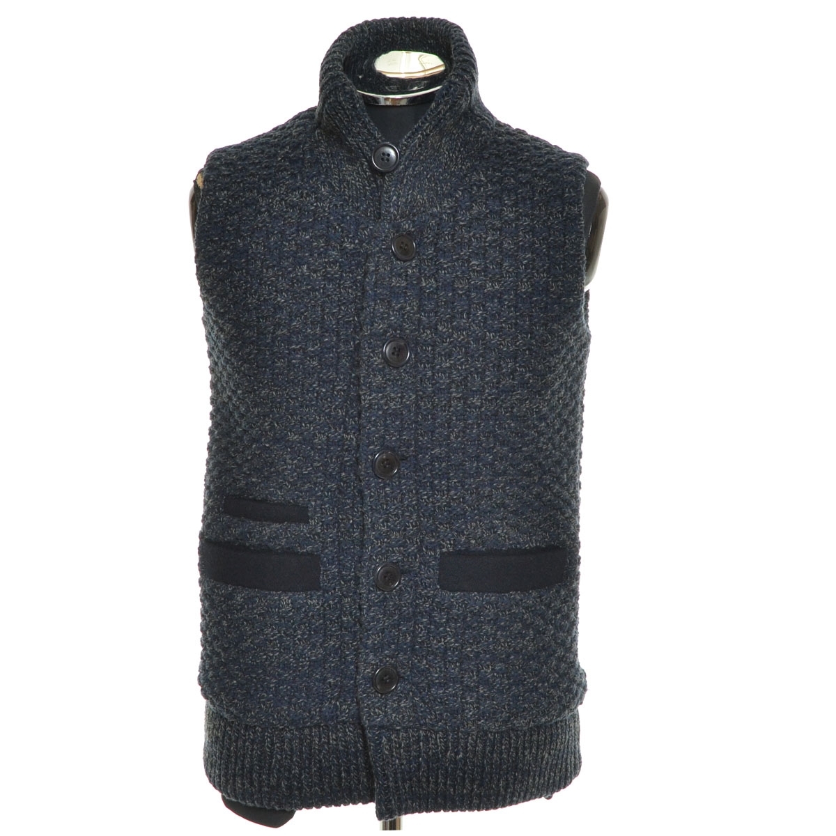 - ●532603 BLUE BLUE ブルーブルー ●圧縮ウールニットベスト ショールカラー サイズ2 メンズ 日本製 ネイビー