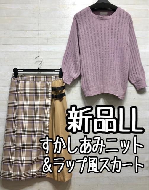 - 新品☆LL♪フェミニンおしゃれ♪すかし編みニット&ラップ風スカート〇A835