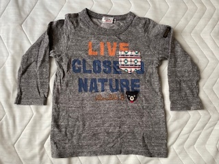 - 着用少★ダブルB★長袖Tシャツ★80★B君ベアお顔ワッペン★左胸ポケット付き★きれいグレー★長袖シャツ★ミキハウス